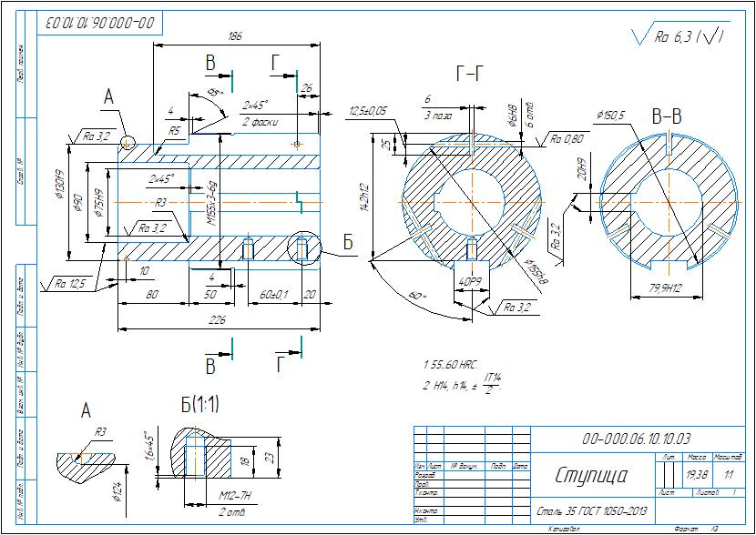 Рабочий чертеж детали ступица 00-000.06.10.10.03 в компасе