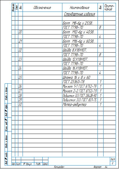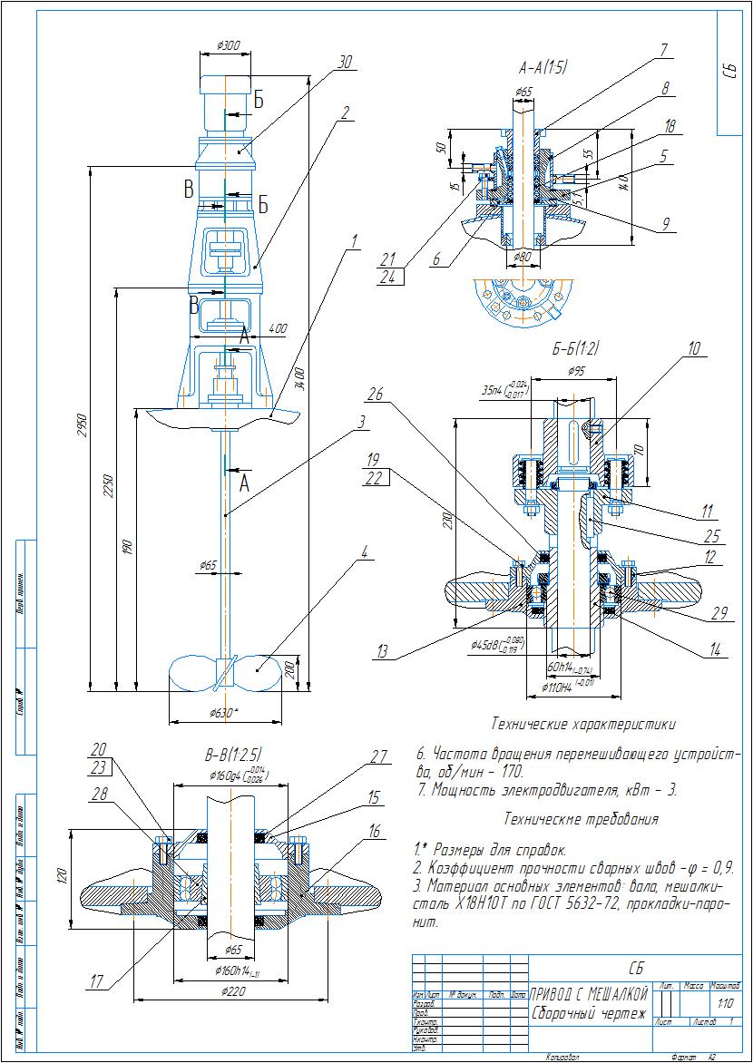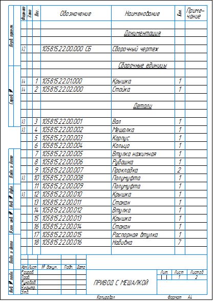 Сборочный чертеж и спецификация изделия привод с мешалкой в программе компас