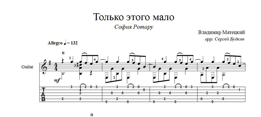 Аранжировка для гитары песни Владимира Матецкого, хита Софии Ротару 80-х.