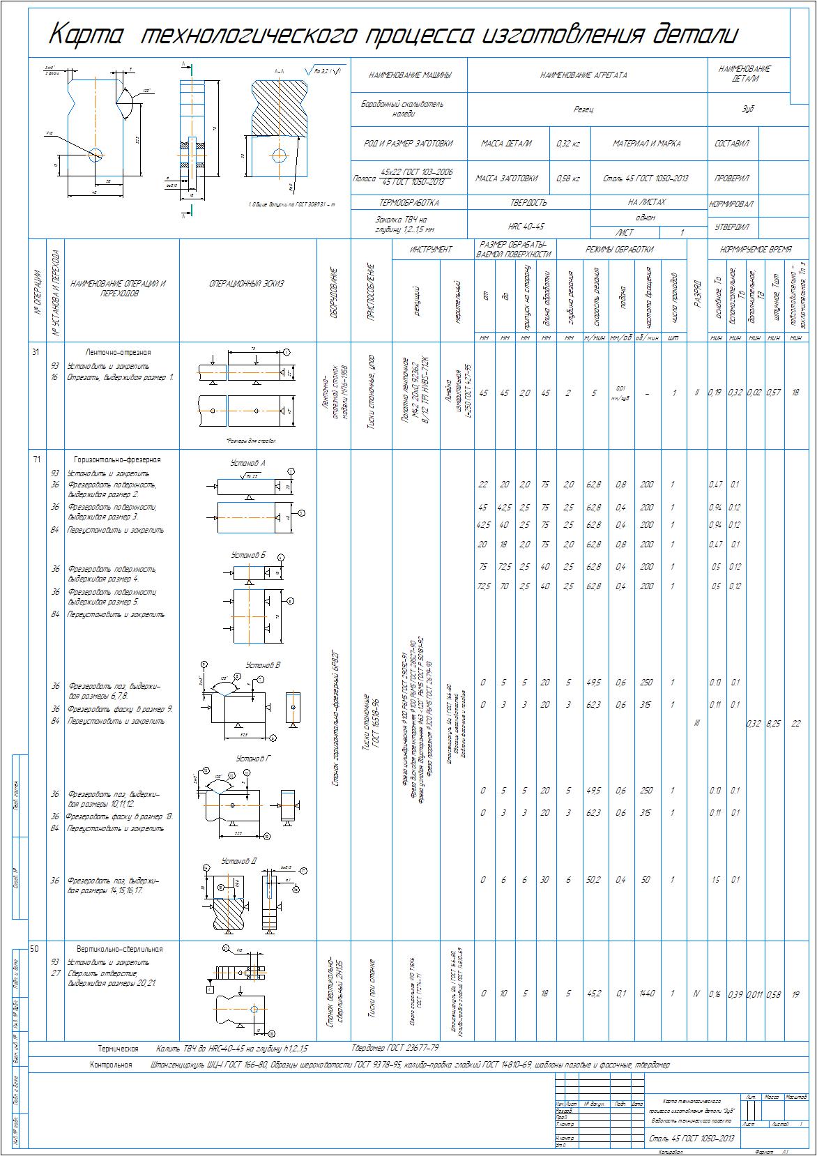 Карта технологического процесса изготовления детали зуб барабанного скалывателя наледи в компасе, на формате А1. В карте представлены: рабочий чертеж детали зуб барабанного скалывателя наледи, перечень операций и переходов, оборудование, режущий и измерительный инструменты, режимы резания, нормы времени, операционные эскизы.