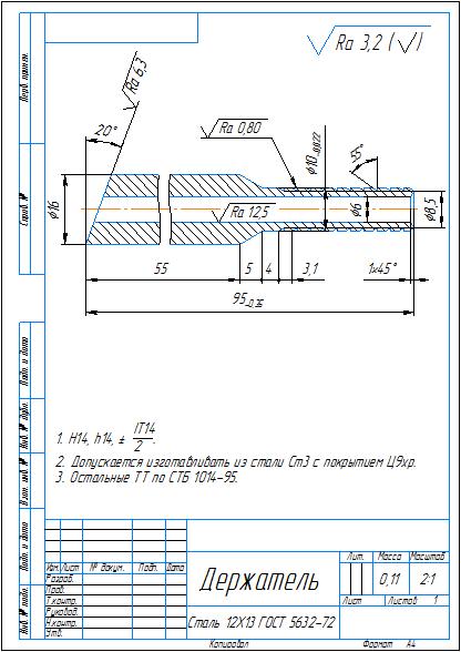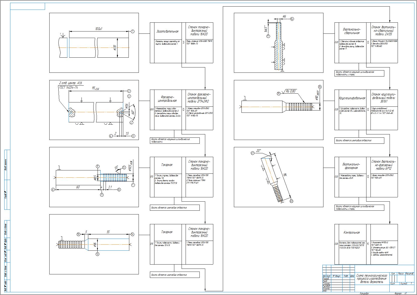 Схема технологического процесса механической обработки детали держатель в компасе, на формате А1. На схеме представлен перечень операций, переходов, режущие инструменты, операционные эскизы. Также приложен рабочий чертеж детали держатель в компасе.