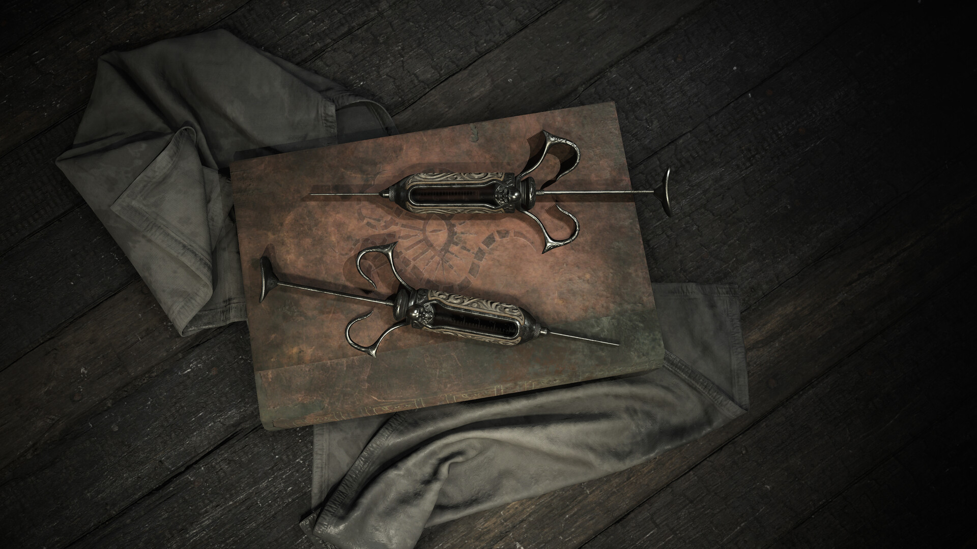 Такие слабые шприцы с лекарством давно в ходу у Охотников с недугами. Они облегчают боль и придают живости. А вот за счет чего… Содержимое шприцов остается загадкой и предметом пугающих споров.