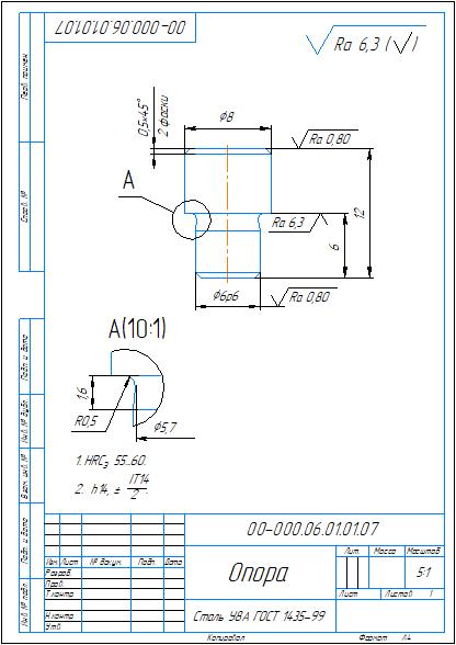Рабочий чертеж детали опора 00-000.06.01.01.07 в компасе