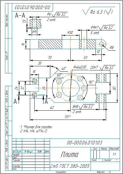 Рабочий чертеж детали плита 00-000.06.01.01.03 в компасе