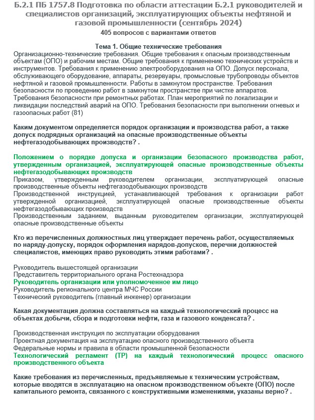 Вопросы с ответами к курсам ОКС-Олимп Б.2.1 ПБ 1757.8 (сентябрь 2024) Подготовка по области аттестации Б.2.1 руководителей и специалистов организаций, эксплуатирующих объекты нефтяной и газовой промышленности