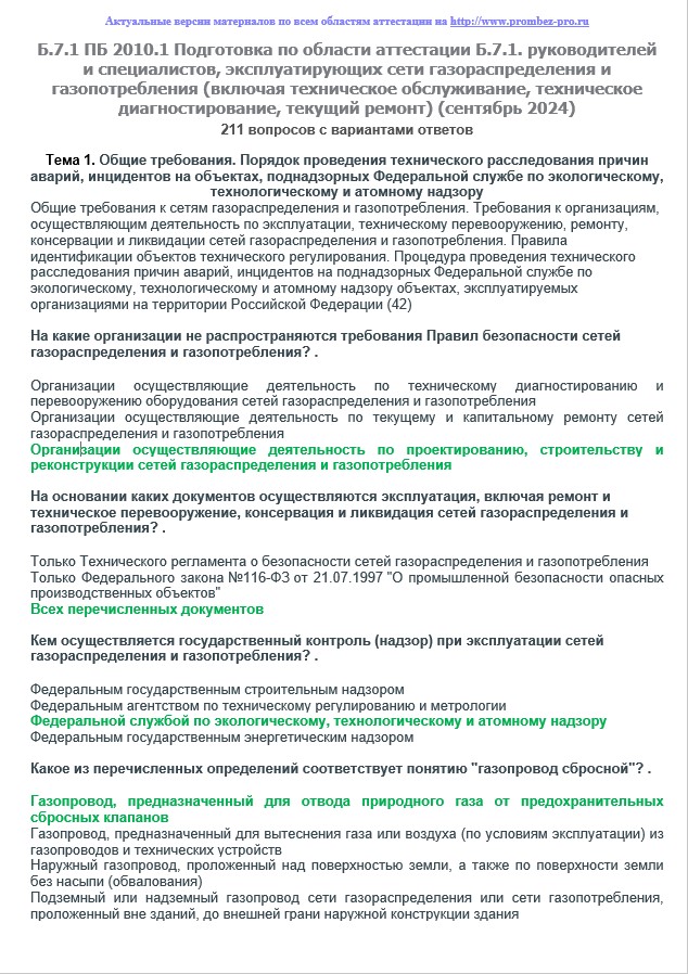 Вопросы с ответами к курсам ОКС-Олимп Б.7.1 ПБ 2010.1 (сентябрь 2024) Подготовка по области аттестации Б.7.1 руководителей и специалистов, эксплуатирующих сети газораспределения и газопотребления