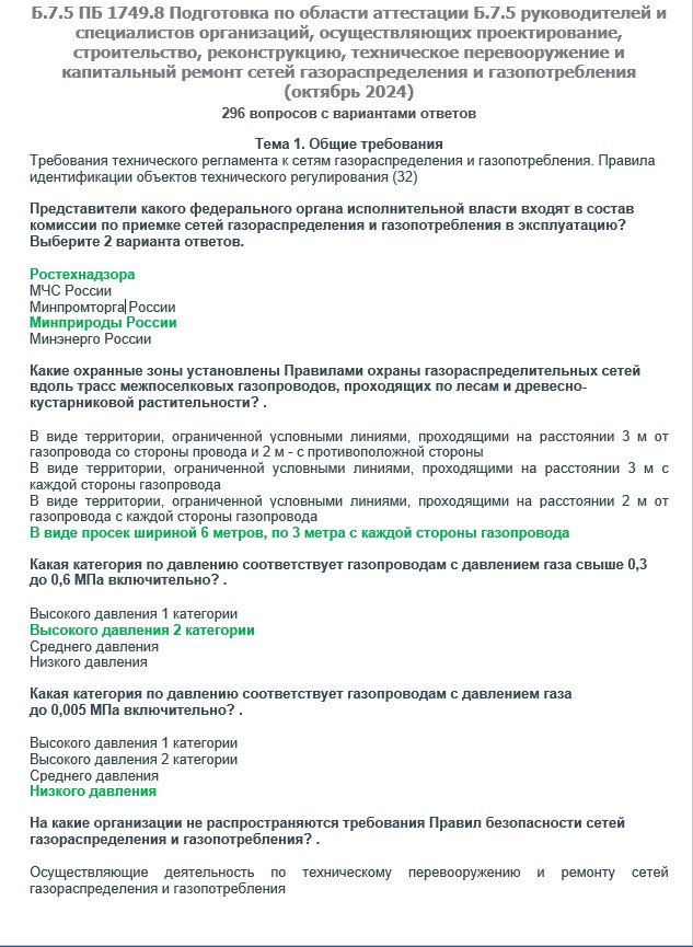 Вопросы с ответами к курсам ОКС-Олимп Б.7.5 ПБ 1749.8 (октябрь 2024) Подготовка руководителей и специалистов организаций, осуществляющих проектирование, строительство, реконструкцию, техническое перевооружение и капитальный ремонт сетей