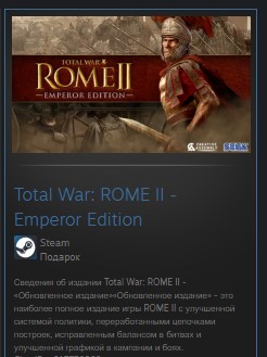 «Обновленное издание»«Обновленное издание» - это наиболее полное издание игры ROME II с улучшенной системой политики, переработанными цепочками построек, исправленным балансом в битвах и улучшенной графикой в кампании и боях.