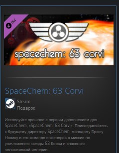 Исследуйте прошлое с первым дополнением для SpaceChem, «SpaceChem: 63 Corvi». Присоединяйтесь к будущему директору SpaceChem, молодому Брюсу Новаку и его команде инженеров в миссии по уничтожению звезды 63 Корви и спасению человеческой империи.