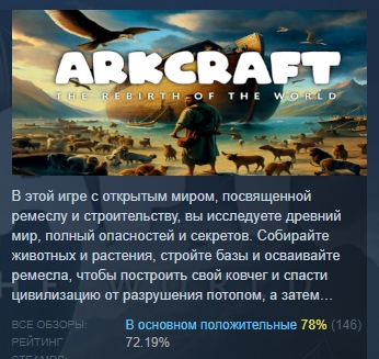 В этой игре с открытым миром, посвященной ремеслу и строительству, вы исследуете древний мир, полный опасностей и секретов. Собирайте животных и растения, стройте базы и осваивайте ремесла, чтобы построить свой ковчег и спасти цивилизацию от разрушения потопом, а затем отстроить ее заново.