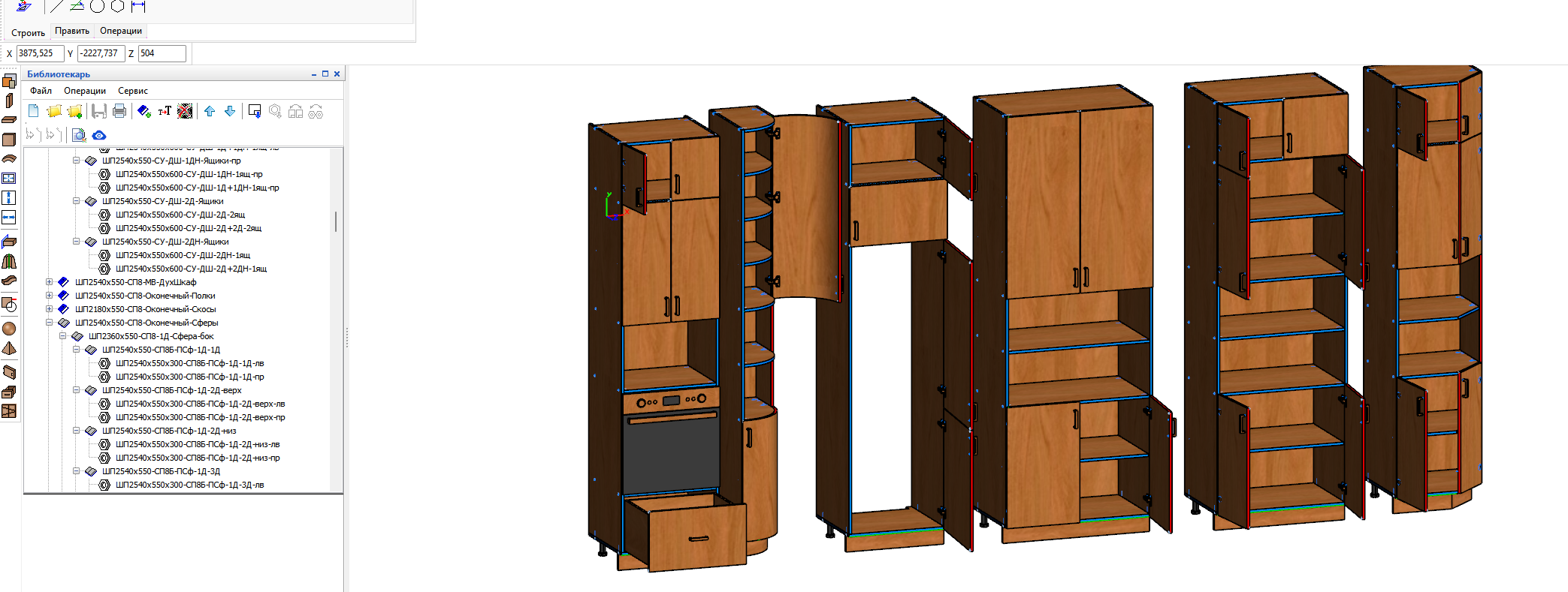 Раскрой , шкаф , смета ,упаковка,салон,склад, сборка всё работает абсолютно исправно.