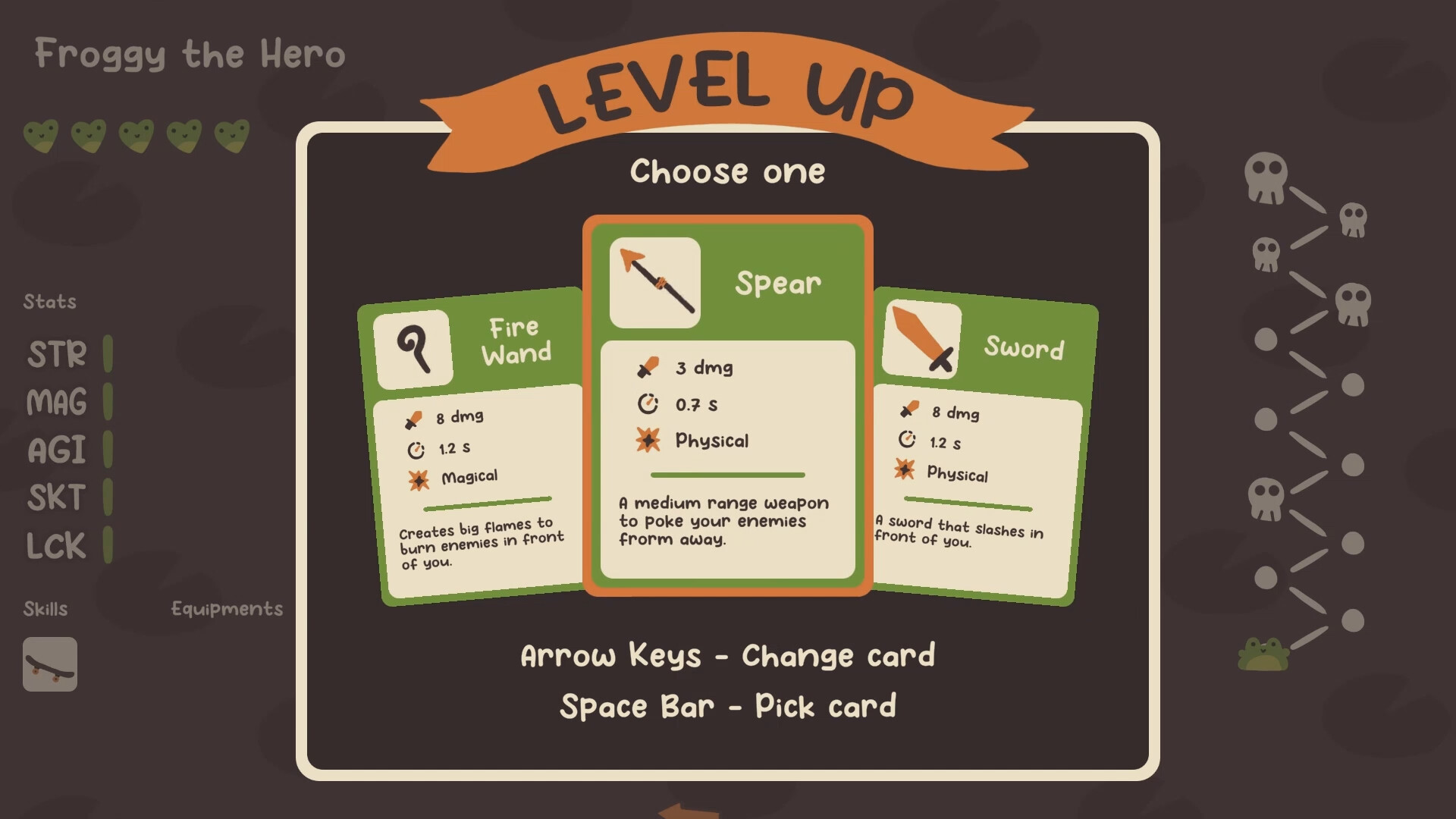 Froggy´s Battle — это экшн-игра в жанре roguelike, действие которой происходит в цикле.