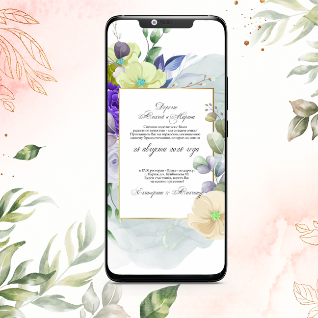 Анимированный видео шаблон приглашения на свадьбу, позволяет без труда персонализировать приглашения, не выходя из собственного дома. Всего несколькими щелчками мыши вы можете настроить каждую деталь, чтобы создать единственное в своем роде приглашение, отражающее суть вашей истории любви.