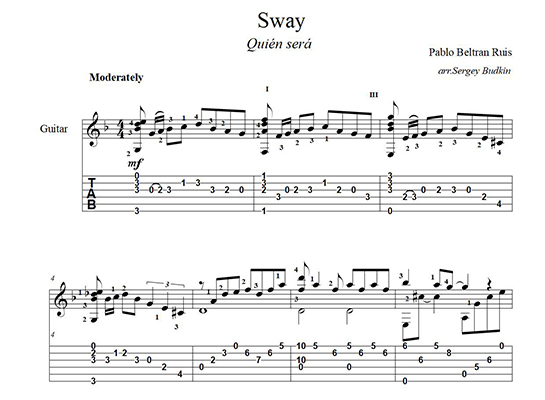 Аранжировка для гитары популярной песни Пабло Руиса из далеких 50-х.
