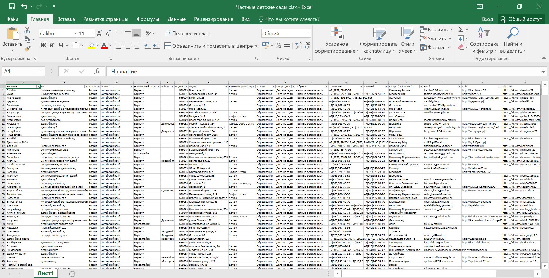 База частных детских садов РФ. Все области России.