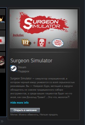 Примерьте на себя образ метящего в хирурги Найджела Бурка — любителя нетрадиционного подхода к медицине, и проводите жизненно важные операции над пациентами, среди которых Пулеметчик из TF2, инопланетянин с неповторимой анатомической структурой и 45-й президент Соединенных Штатов Америки — да-да, мистер Дональд Дж. Трамп собственной персоной!