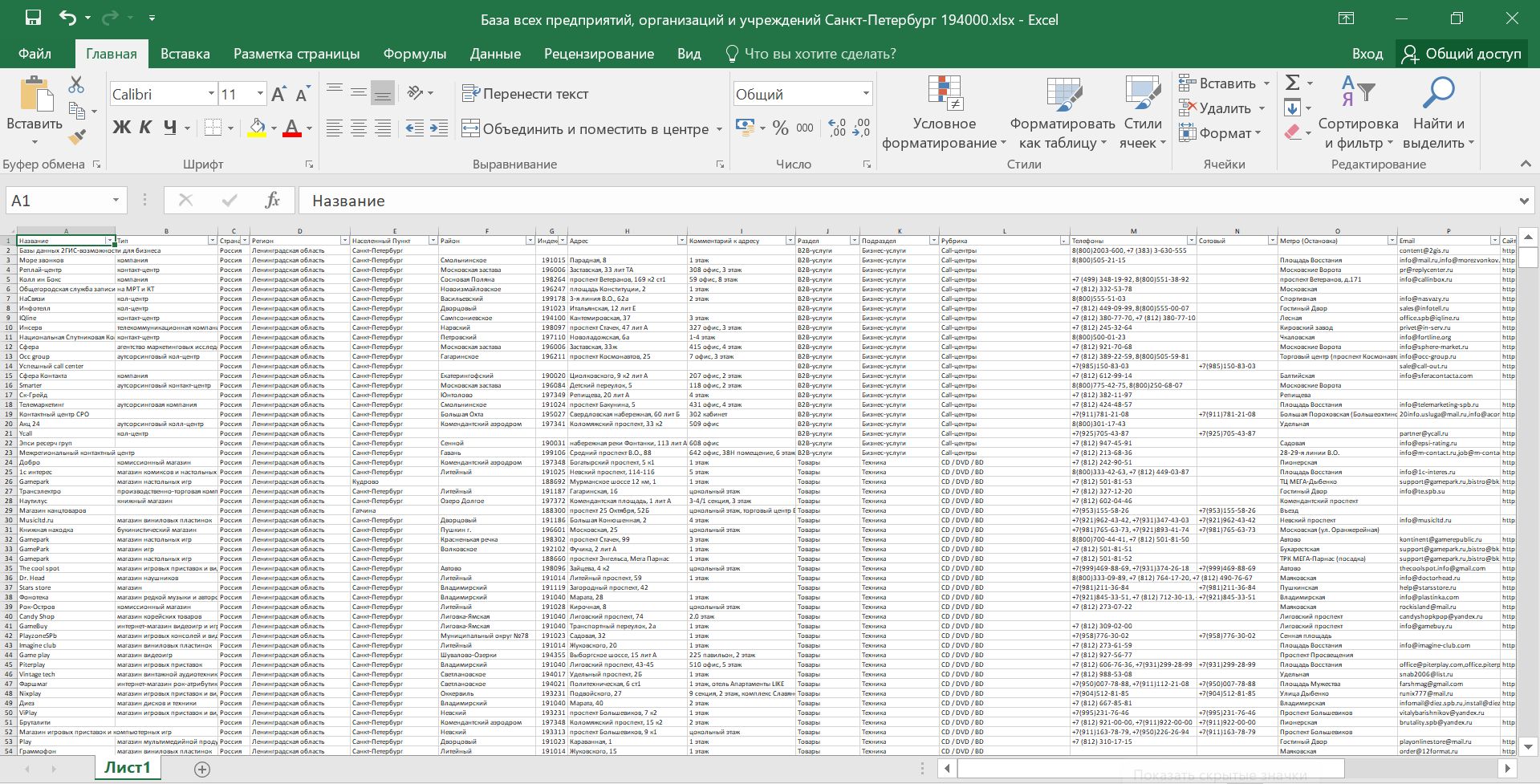 База всех предприятий, организаций и учреждений Санкт-Петербурга