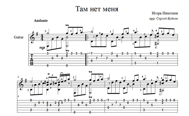 Аранжировка для гитары песни Игоря Николаева из репертуара певицы Севары.