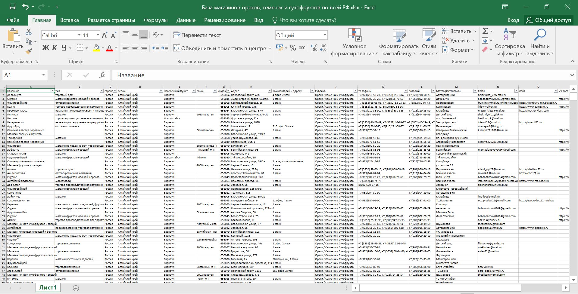 База магазинов орехов, семечек и сухофруктов по всей РФ, России