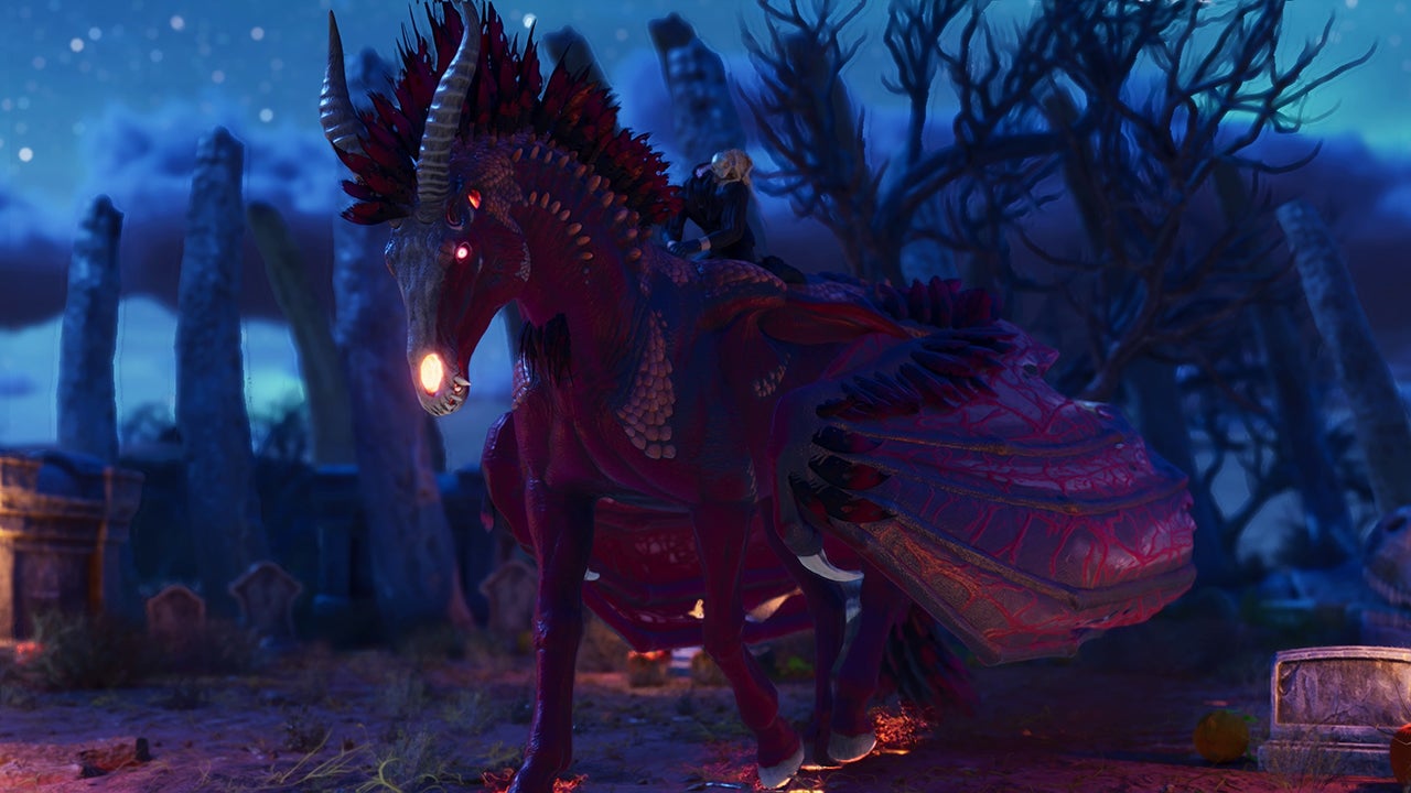 Окутанный тьмой и о котором ходят легенды, Ужасный Кобыл — существо из мифов и кошмаров. Своими темными крыльями и испорченным рогом он вызывает пугающее ощущение неизведанного.