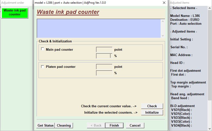 Версия для сброса ошибки переполнения памперса в моделях: L386