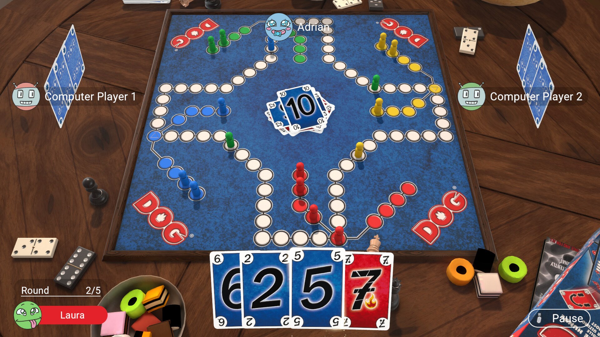 На вид это Ludo, но на самом деле это DOG®. В этой игре тоже нужно доставить фишки в «домик». Разница в том, что двигать их нужно с помощью карт, и тут вас ждут внезапные сюрпризы! Командный дух очень важен: выиграть можно только вместе.