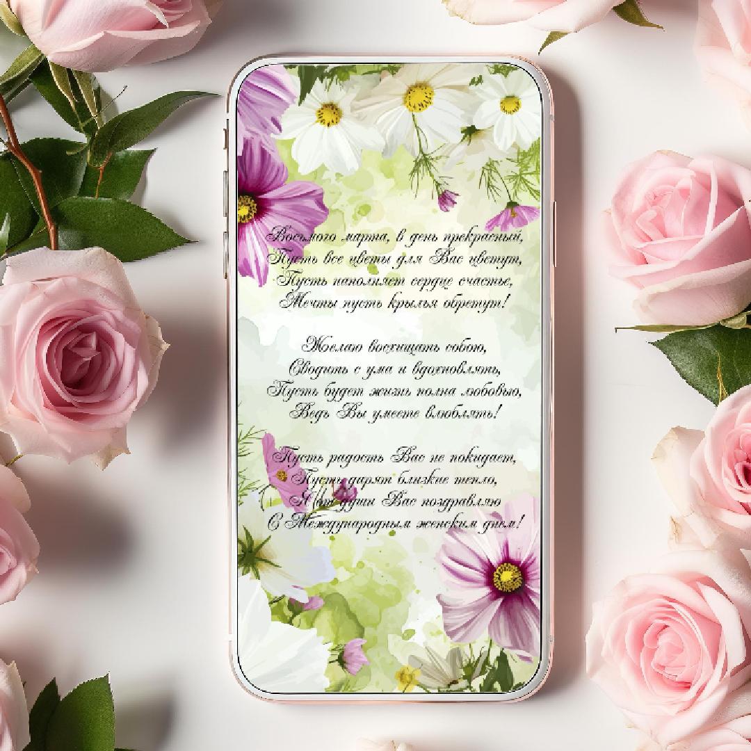 анимированная открытка 8 марта, цифровая открытка, поздравление 8 марта, открытка с музыкой, праздничная открытка онлайн