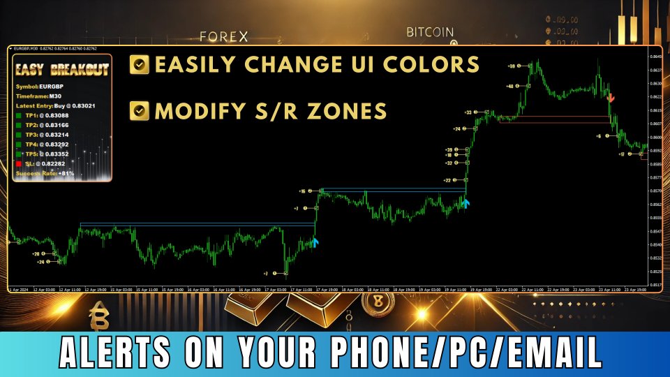 Easy Breakout — это мощная система торговли по ценовому действию, построенная на одной из самых популярных и надежных стратегий среди трейдеров: стратегии прорыва! Этот индикатор дает четкие сигналы покупки и продажи на основе прорывов ключевых зон поддержки и сопротивления. В отличие от обычных индикаторов прорыва, он использует расширенные вычисления для точной проверки прорыва! Когда происходит прорыв, вы получаете мгновенные оповещения на свой компьютер, по электронной почте и даже прямо на свой телефон!
