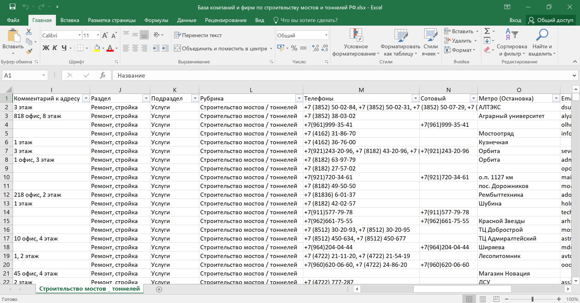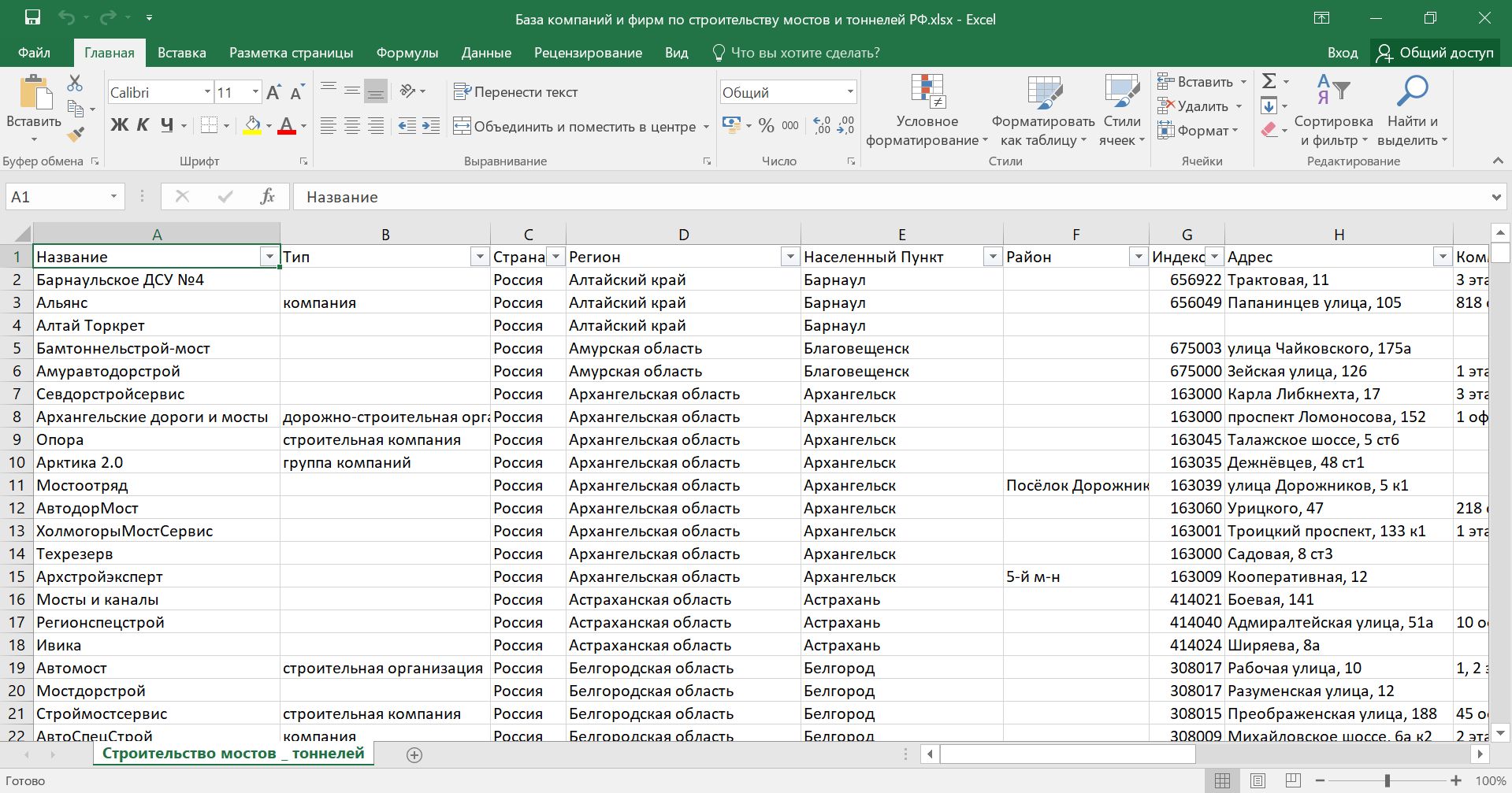 База организаций, фирм и компаний по строительству тоннелей и мостов по всей России. Все области РФ.