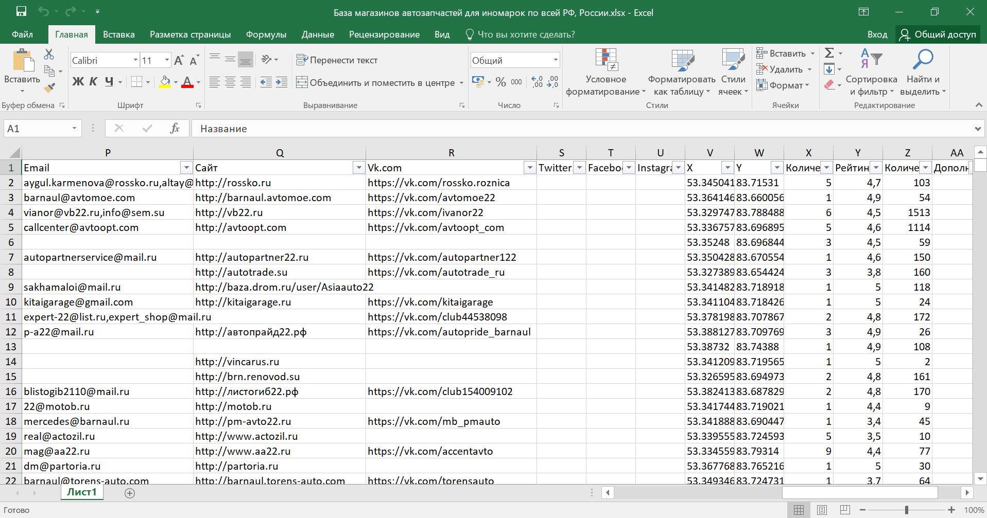 Также осуществляю парсинг нужной Вам категории организаций по любому городу РФ. Пишите по контактам