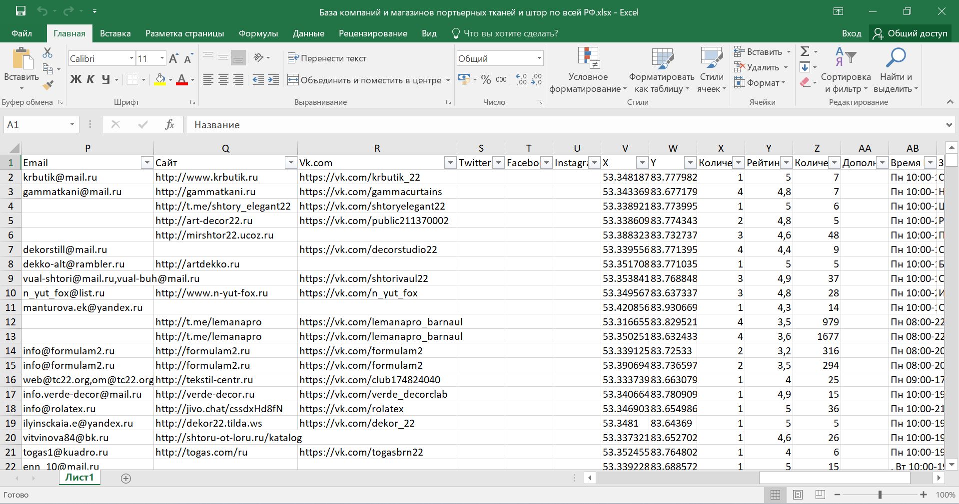 Также осуществляю парсинг нужной Вам категории организаций по любому городу РФ. Пишите по контактам