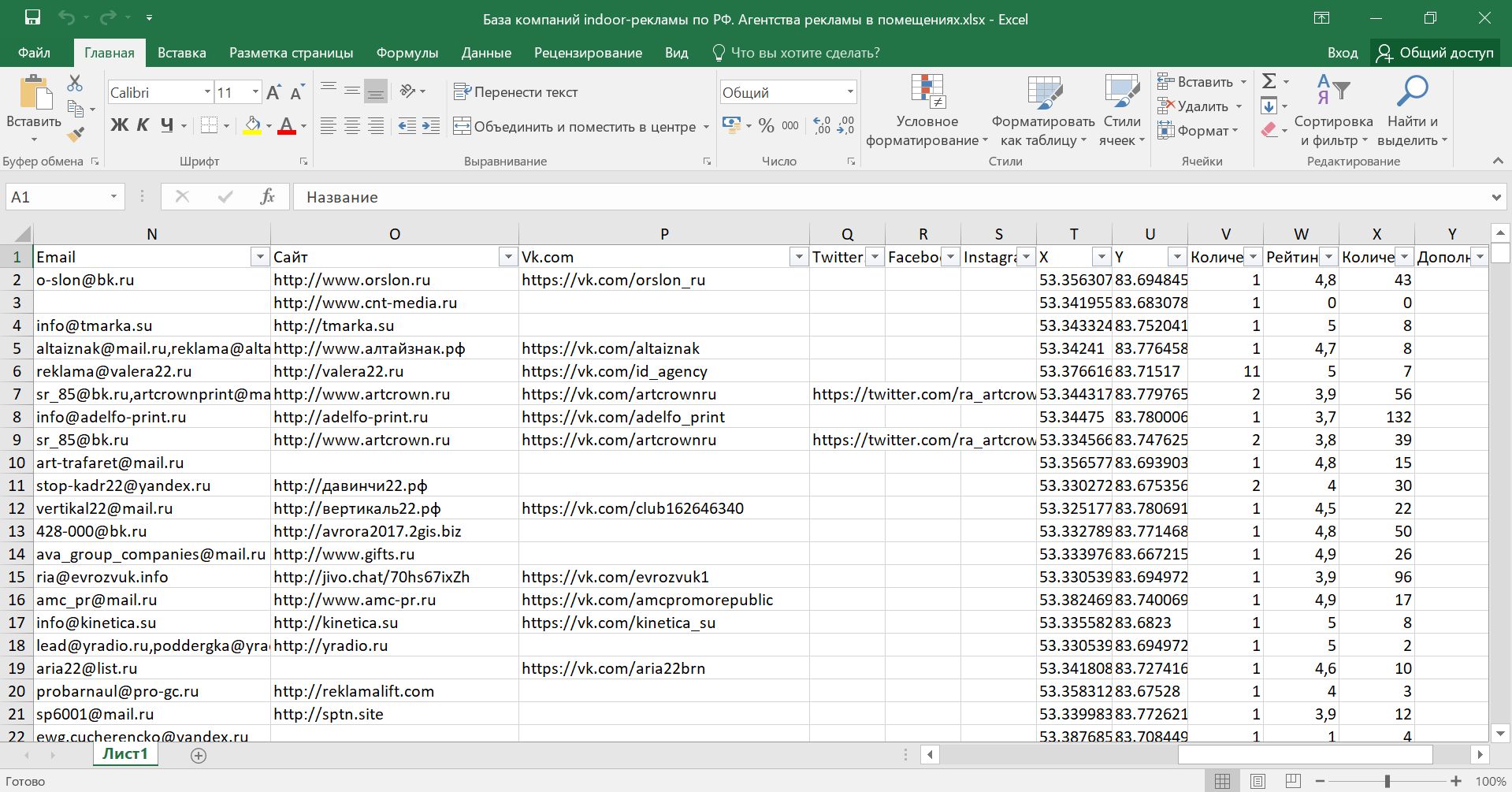 Также осуществляю парсинг нужной Вам категории организаций по любому городу РФ. Пишите по контактам
