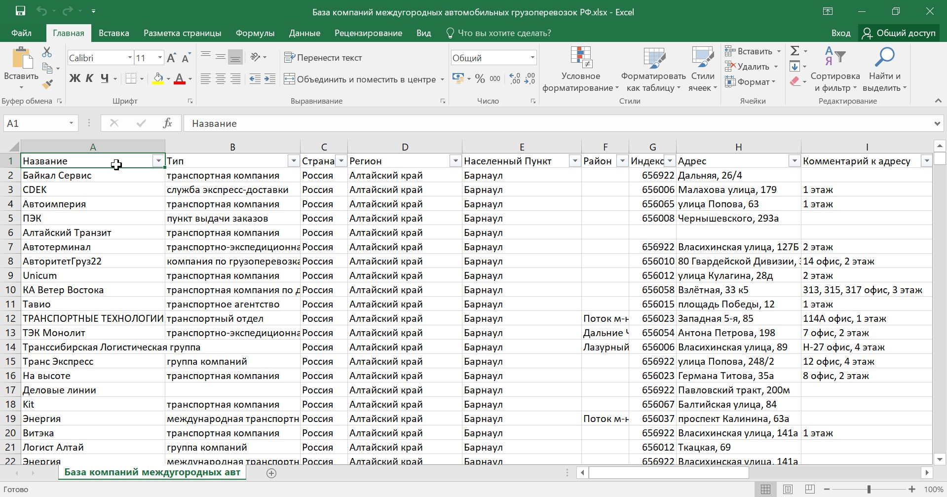 База компаний междугородных автомобильных грузоперевозок России. Все области РФ