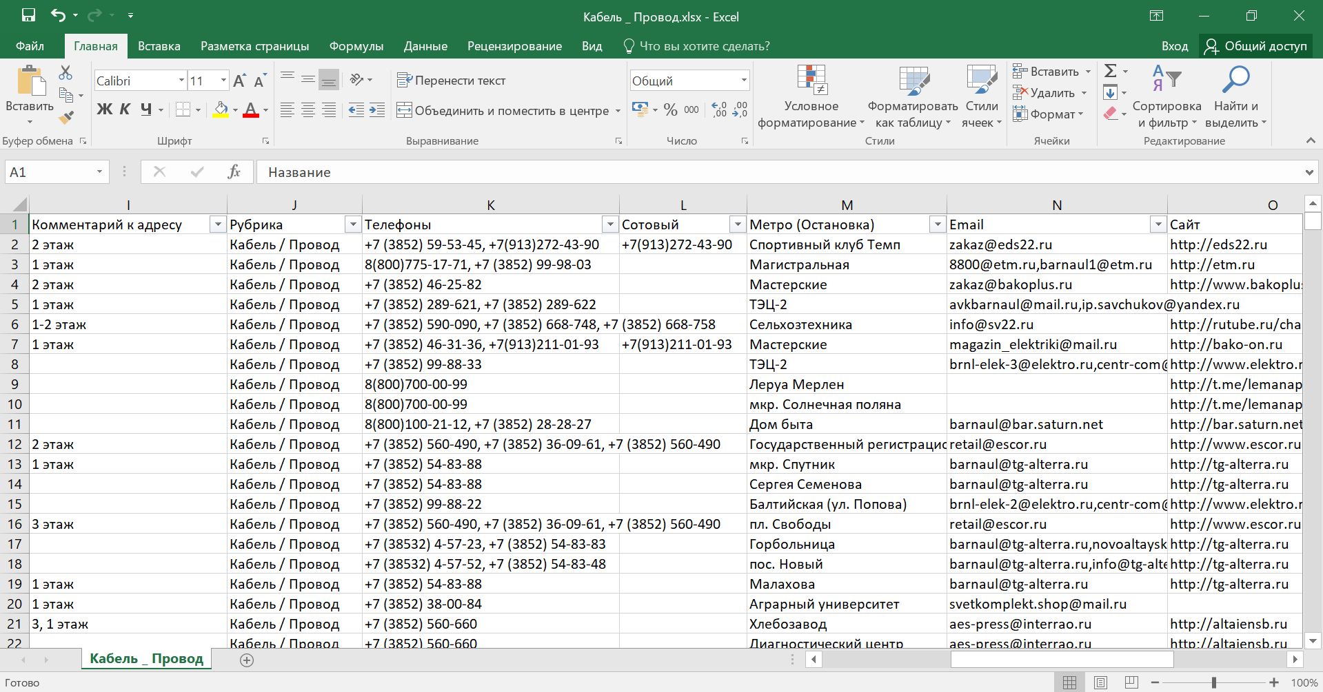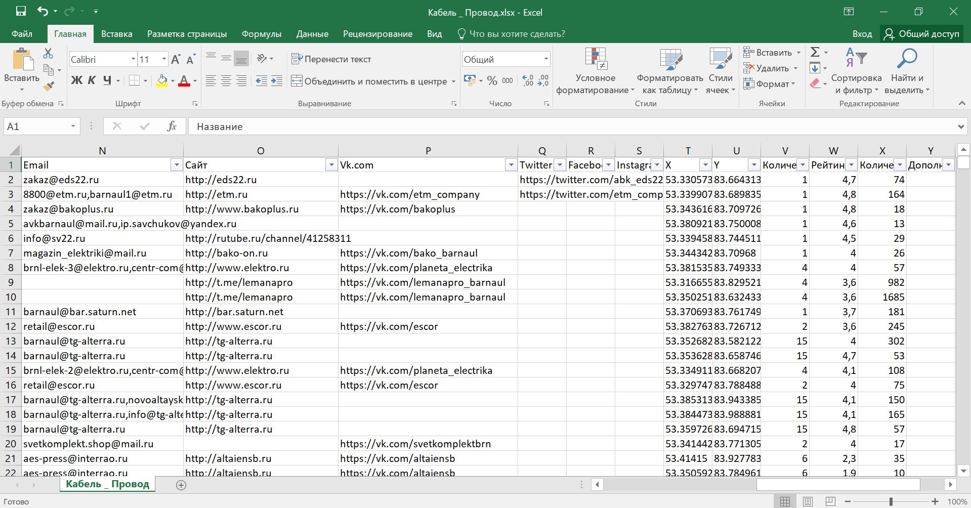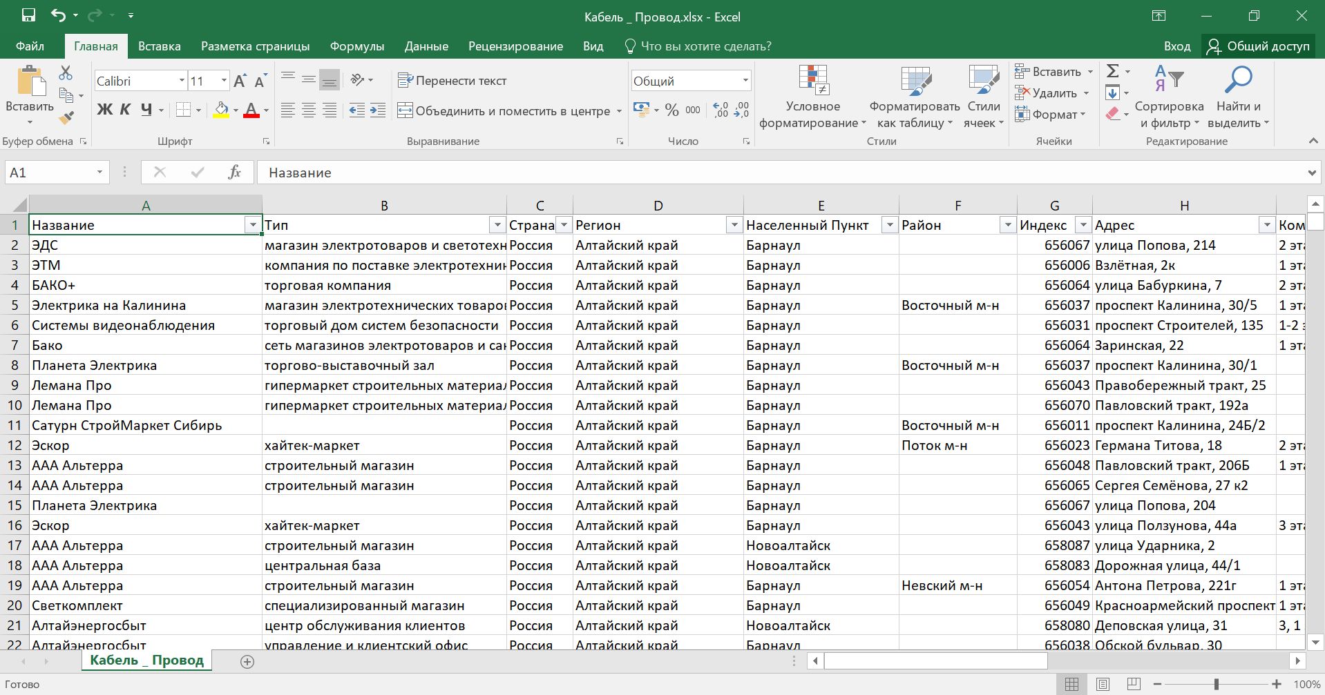 База магазинов Продажи кабеля, провода РФ. Компании и магазины по всем областям России