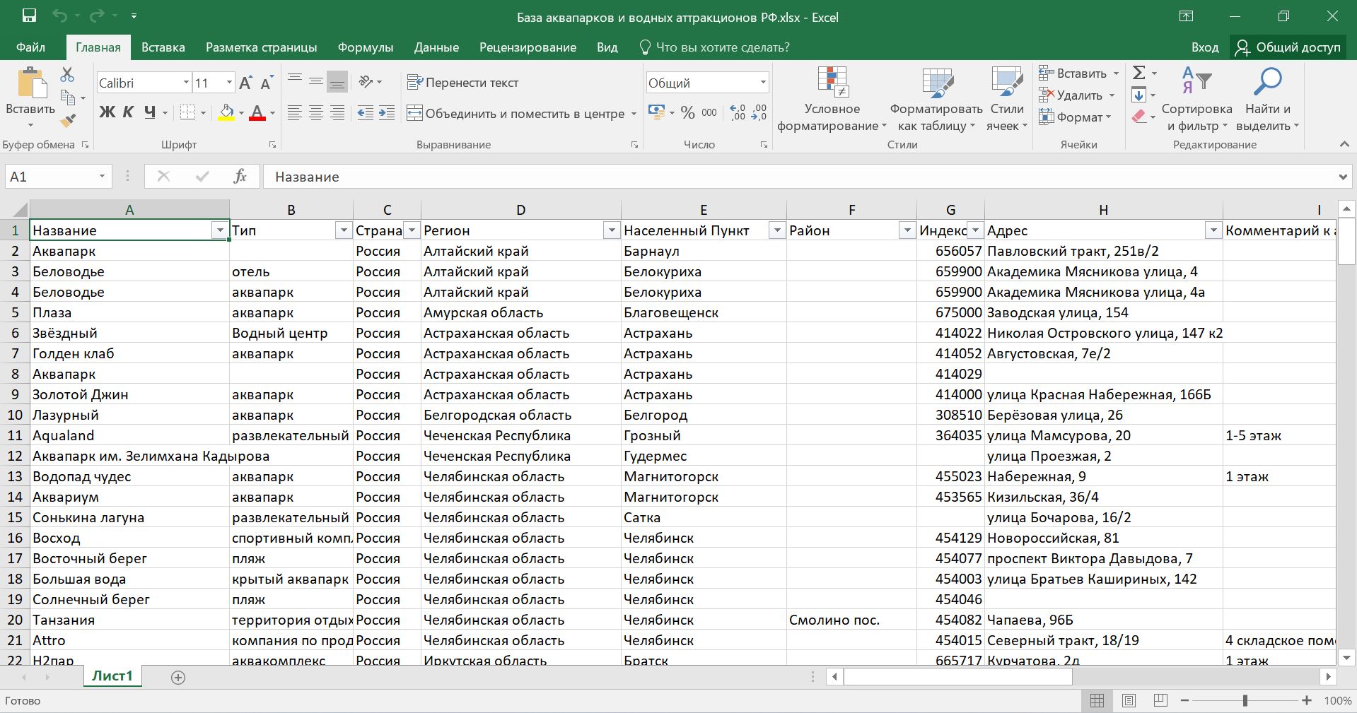 База аквапарков и водных аттракционов России. Все области РФ