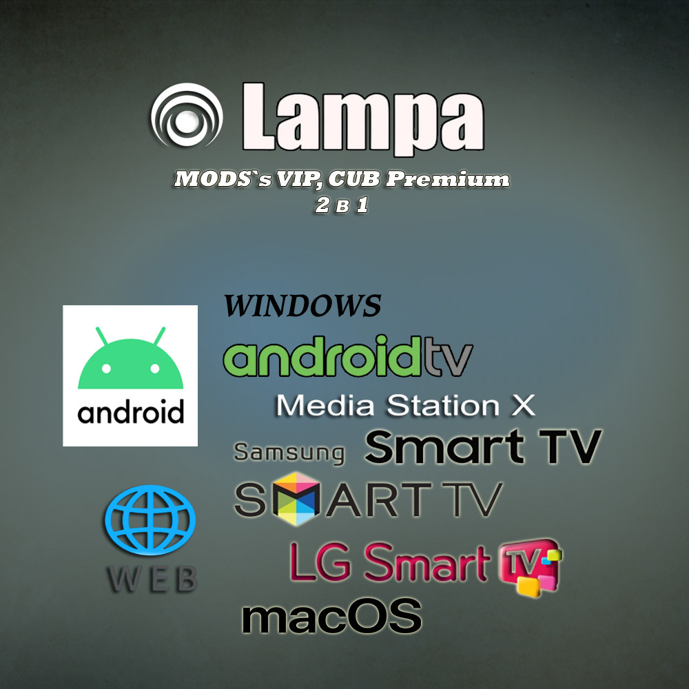 Просмотр Lampa поддерживается на следующих устройствах и платформах: Windows, Android, Android TV, Smart TV, LG WebOS, Samsung Tizen, Samsung Orsay, MacOS.