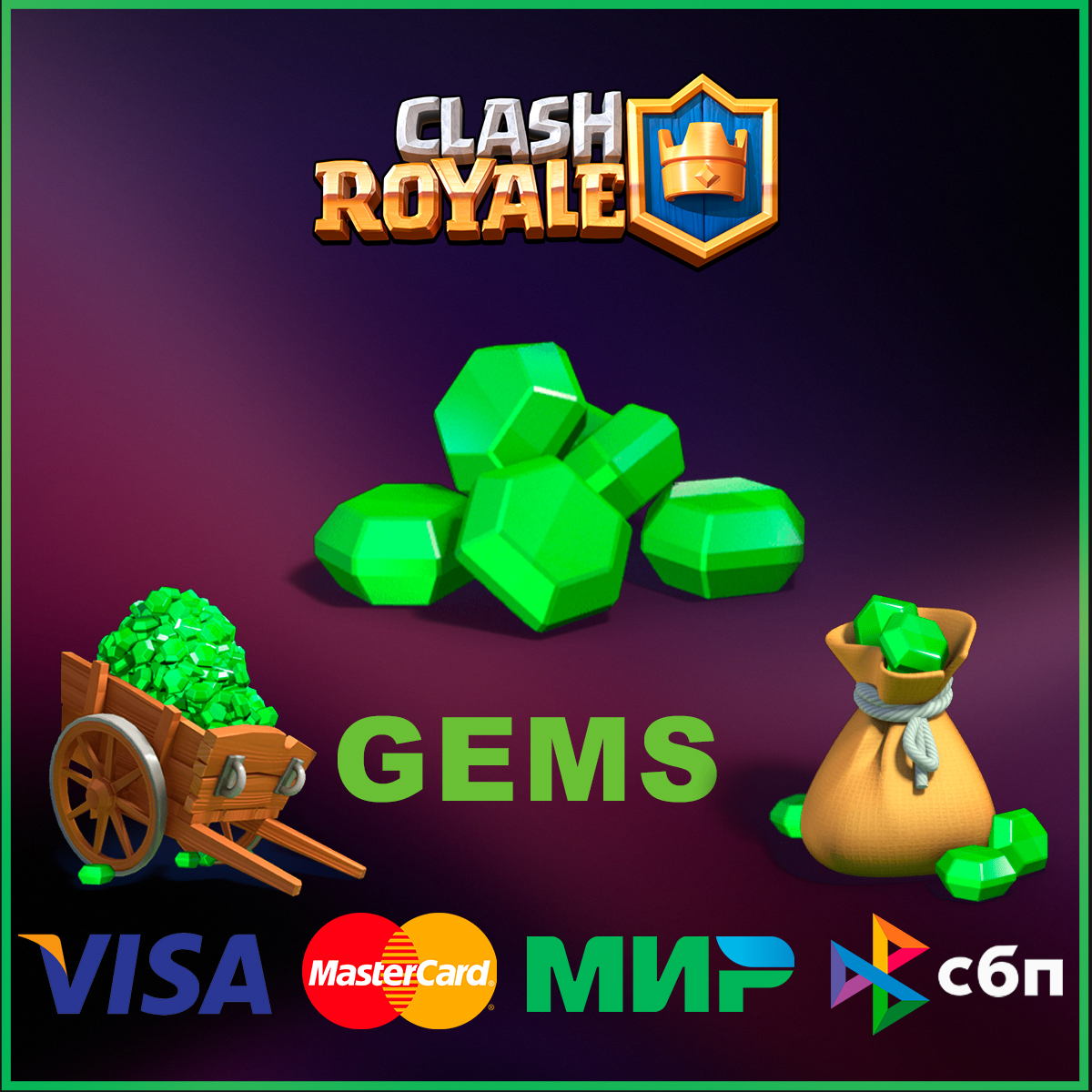 ⌚️ Режим работы тех поддержки: с 10-00 (утра) до 23-00 (вечера) по МСК (Московское время)🌀НАЗВАНИЕ: CLASH ROYALE 💎 ГЕМЫ✅Активация возможна для России и для любого другого региона 🌍 GLOBAL.