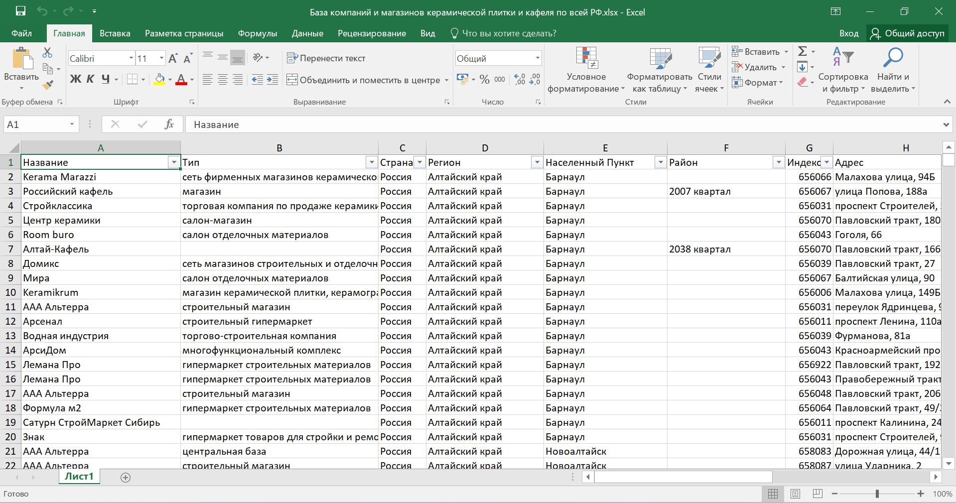 База магазинов, компаний керамической плитки и кафеля по всем регионам России
