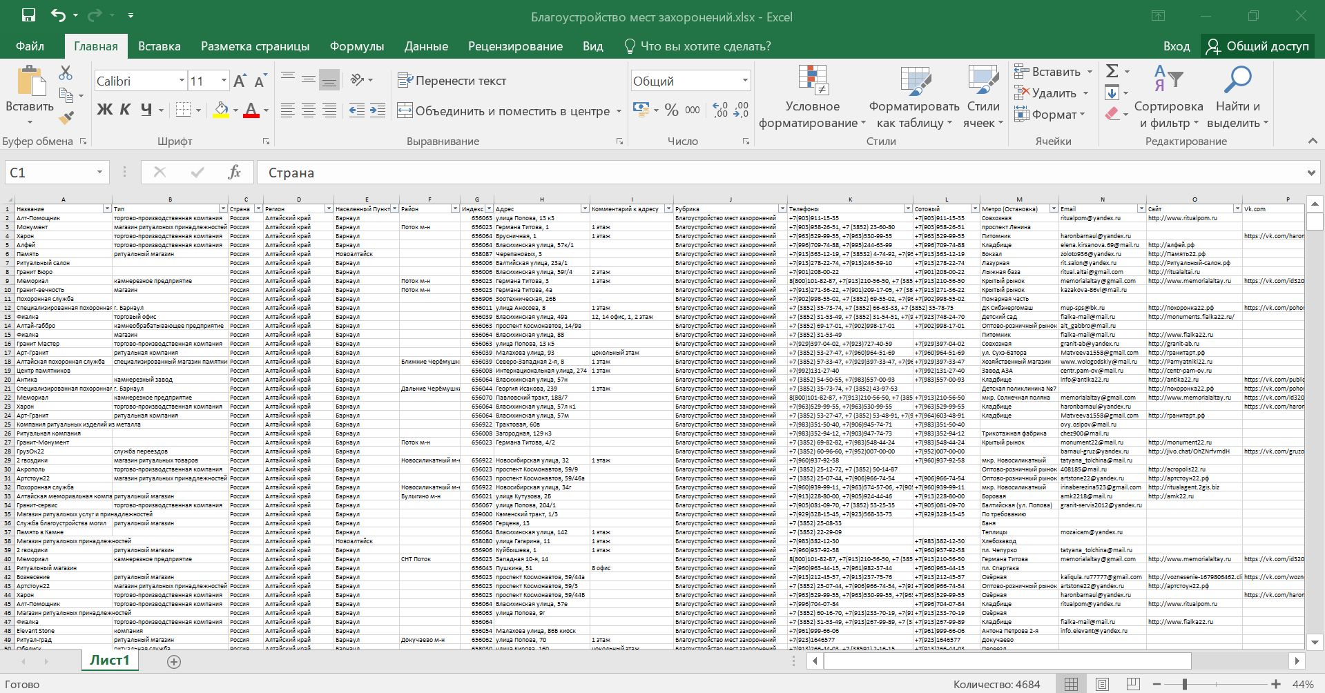 База компаний по благоустройству мест захоронений РФ. Все регионы России
