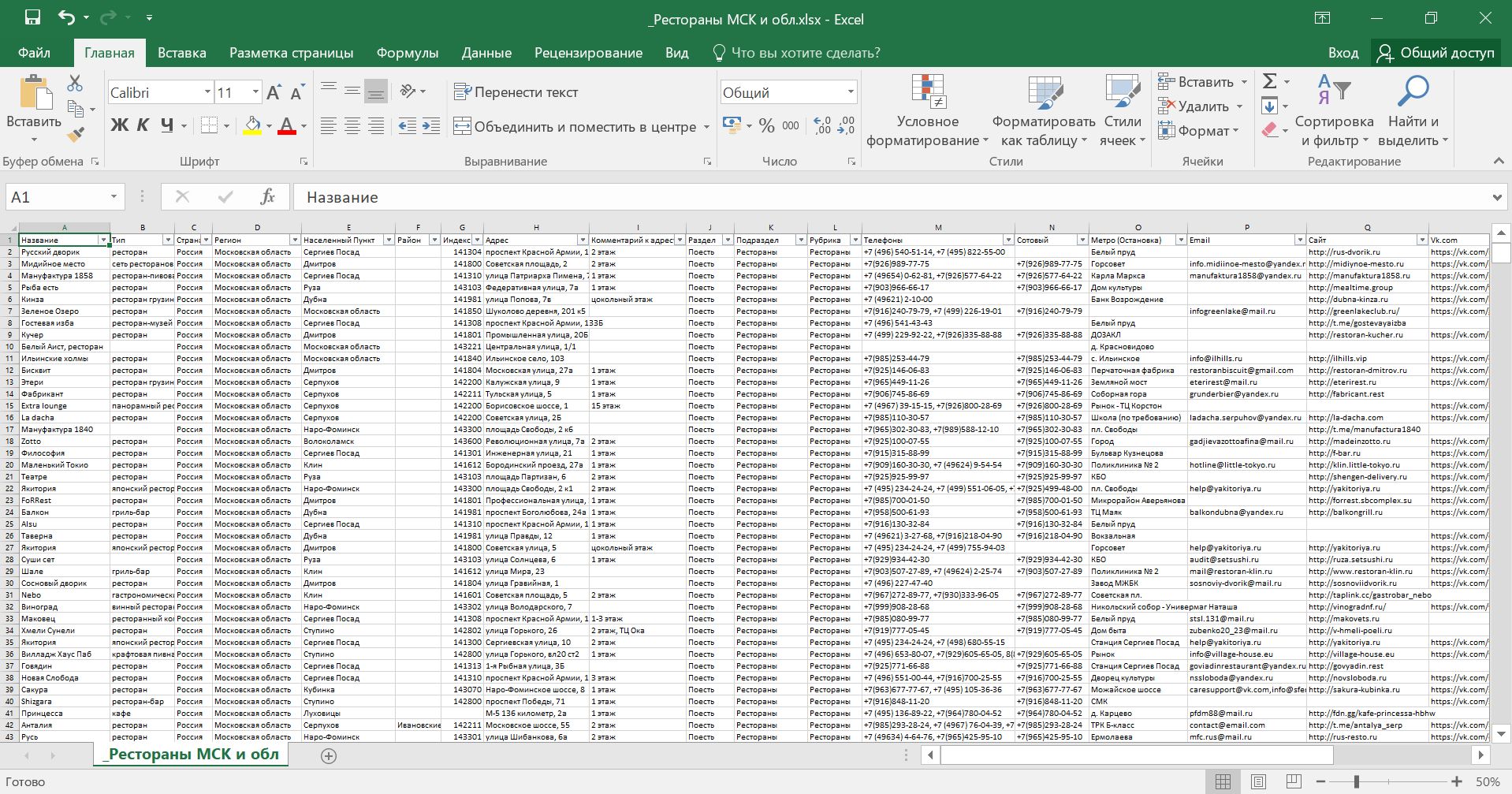 База ресторанов Москвы и московской области
