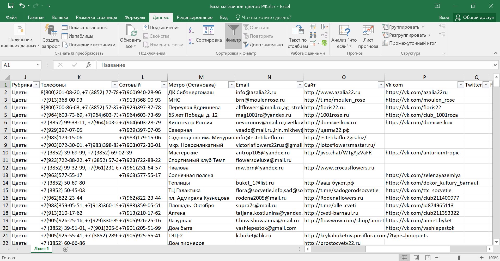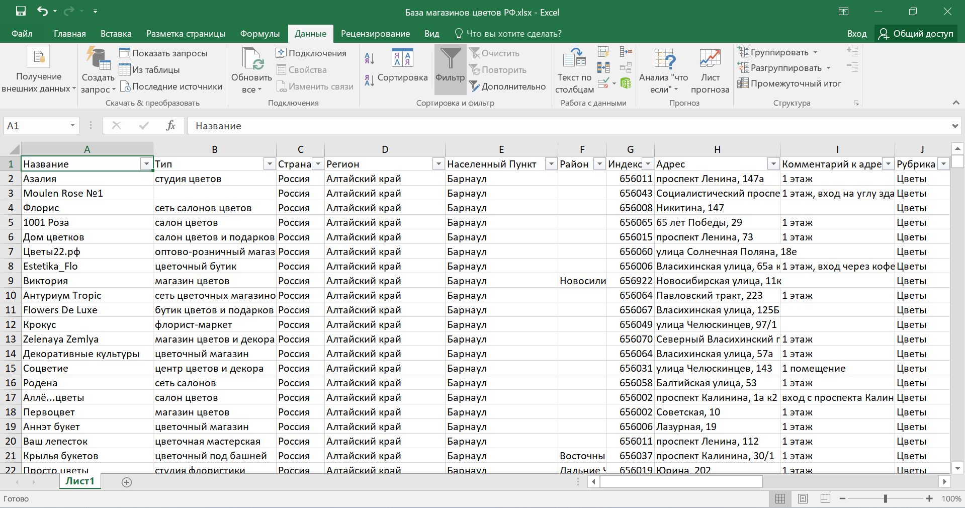 База магазинов цветов РФ. Цветочные магазины России