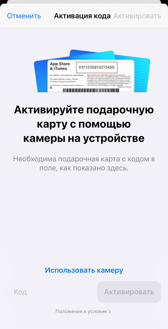 Подробнее о пополнении аккаунта iTunes Store, iBooks Store или App Store подарочными картами: