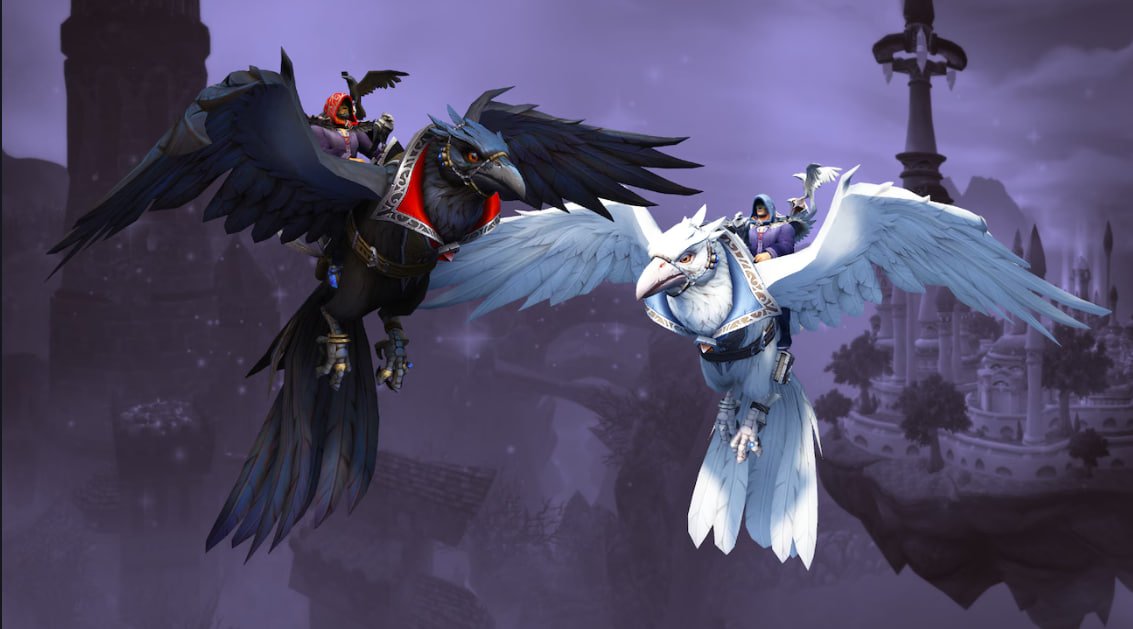Оба ездовых больших ворона будут доступны персонажам в современной версии WoW®, уже привязанным к учетной записи, а также тем, что вы создадите в будущем. Они автоматически адаптируются к навыку верховой езды персонажа. Если навык еще не позволяет пользоваться летающими средствами передвижения, большие вороны будут наземным транспортом.