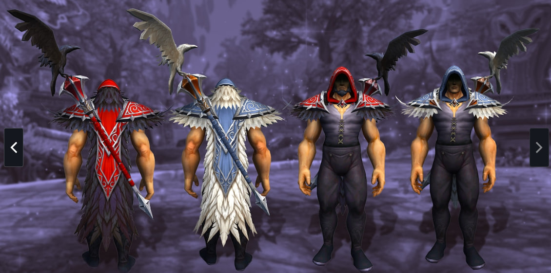 Вдобавок к двум ездовым большим воронам набор также включает два комплекта для трансмогрификации доспехов и посоха.