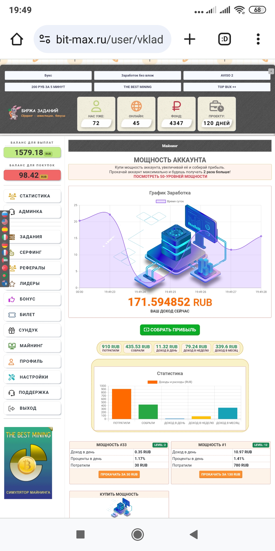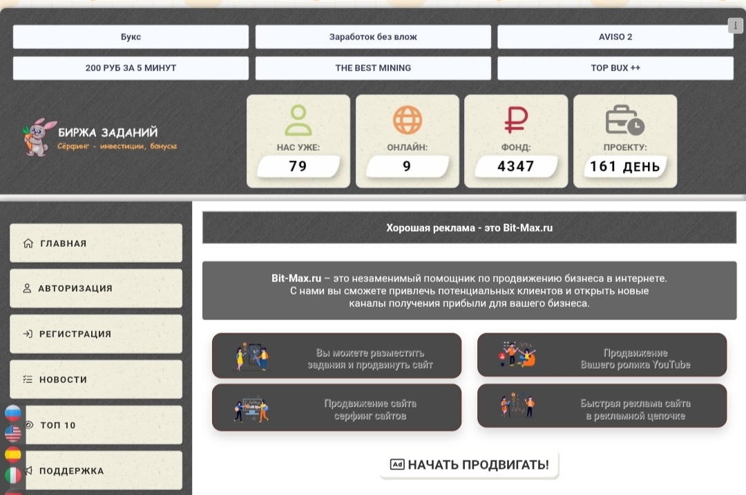 серфинг, рекламные цепочки, новости и статистика, что минимизирует нагрузку на сервер и увеличивает отклик системы.