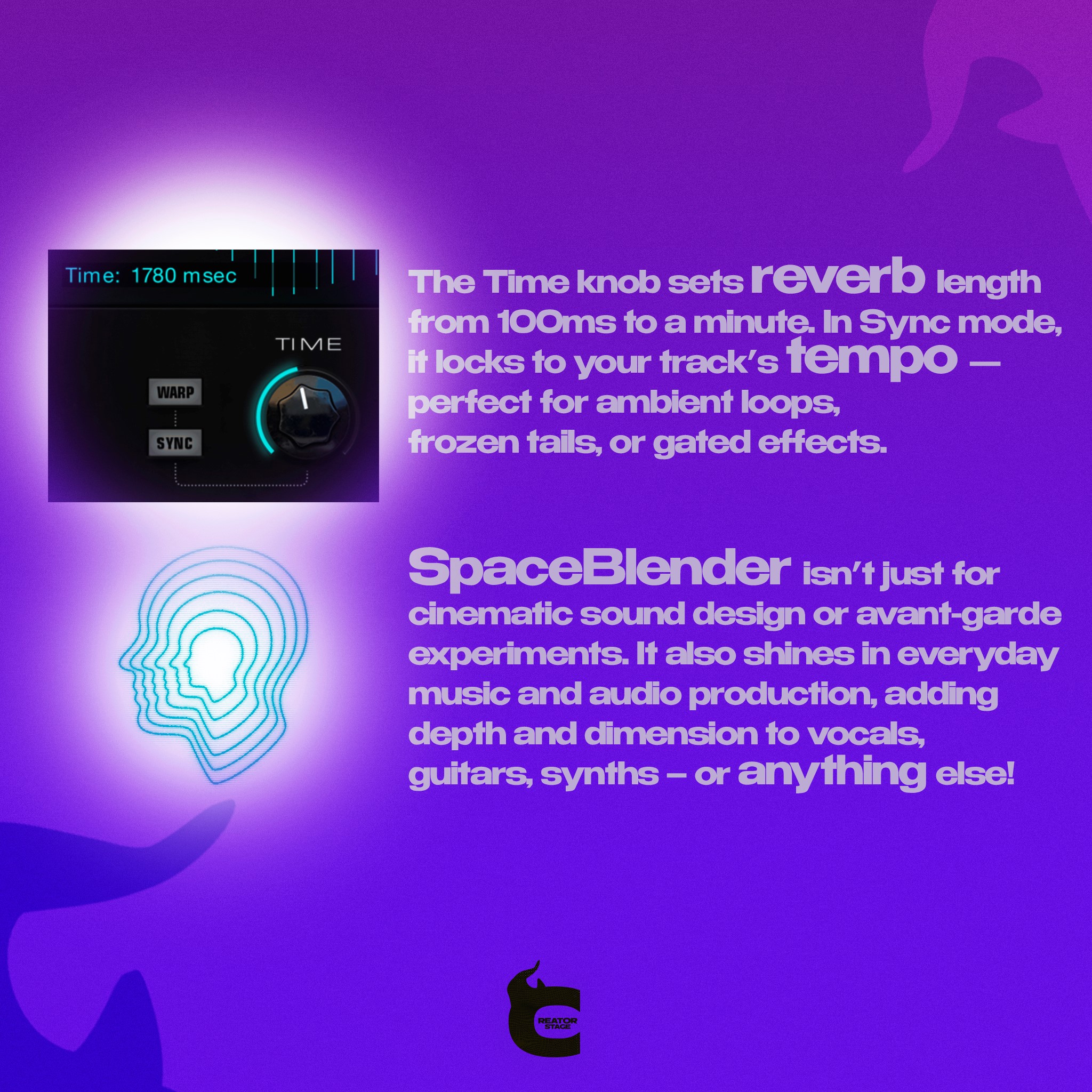 SpaceBlender предназначен не только для кинематографического звукового дизайна или авангардных экспериментов. Он также применяется в повседневной музыке и аудиопроизводстве, добавляя глубину и размерность вокалу, гитарам, синтезаторам – или чему угодно еще!