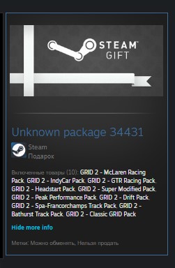 Включенные товары (10): GRID 2 - McLaren Racing Pack, GRID 2 - IndyCar Pack, GRID 2 - GTR Racing Pack, GRID 2 - Headstart Pack, GRID 2 - Super Modified Pack, GRID 2 - Peak Performance Pack, GRID 2 - Drift Pack, GRID 2 - Spa-Francorchamps Track Pack, GRID 2 - Bathurst Track Pack, GRID 2 - Classic GRID Pack