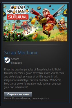 Погрузитесь в творческий рай Scrap Mechanic! Стройте фантастические машины, отправляйтесь в приключения с друзьями и защищайтесь от волн злых фермерских ботов в этой творческой многопользовательской песочнице для выживания. С помощью мощных инструментов для создания Scrap Mechanic вы можете создавать собственные приключения!