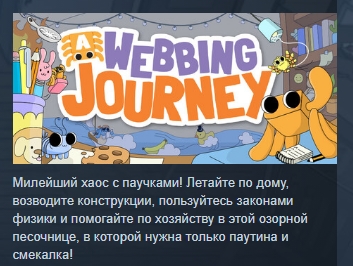 Милейший хаос с паучками! Летайте по дому, возводите конструкции, пользуйтесь законами физики и помогайте по хозяйству в этой озорной песочнице, в которой нужна только паутина и смекалка!