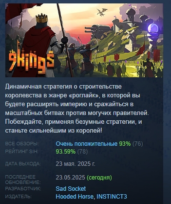 У каждого из 9 королей – уникальная стартовая колода: постройки, войска и заклинания. Но вы можете грабить королей-соперников, нападающих на ваши земли, чтобы получить карты из их колод! Заключайте мир с теми, чьи войска вам не подходят, и объявляйте войну королям, чьи силы жаждете заполучить. Используйте добытые у врагов ресурсы, чтобы создавать комбинации усилений и модификаторов и собрать непобедимую армию!